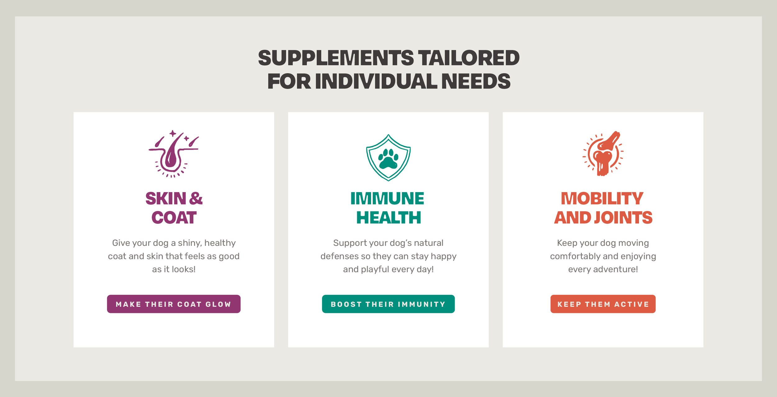 Using bold typography, vibrant color palettes, and hand-drawn illustrations, the visual language balanced big doggy energy with warmth and a touch of imperfection. The Ziggy’s brand shouldn’t just sell supplements, but should also spark delight and transform daily health routines into moments of joy and connection.